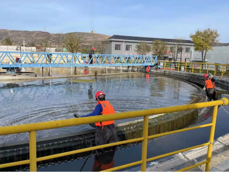 文明创建我先行——泓源城东污水处理公司全面清洗二沉池 全力保障出水达标排放